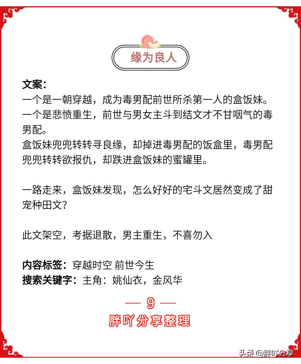 1、偏执腹黑男主vs温柔善良女主,伪兄妹文题材。女主穿书,成为了一个女炮灰,因为太作死很快就被男主弄死了。女主穿书过来后就各种刷好感,因前后差距太大,被男主识破身份,开始接纳。前面部分乡村线,后面是离开乡村后的科举之路。