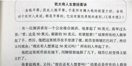 在《塔木德》这本书中都会提到。如果把《塔木德》比作中国的一本书,那么就是《道德经》,《犹太人的智慧全书》就像《孙子兵法》。