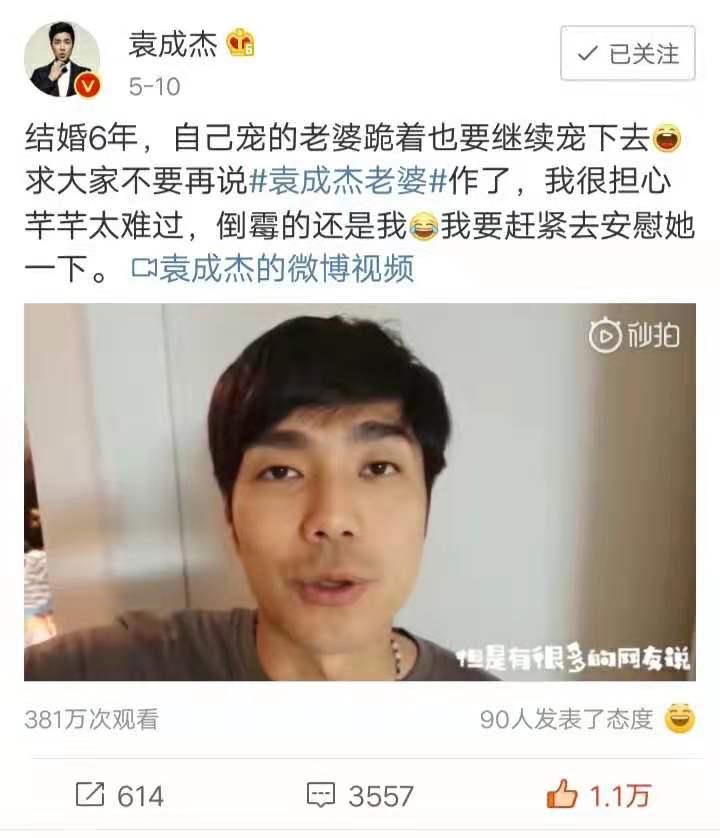 袁成杰翻红了,这次不是因为歌,而是因为宠老婆,被网友们封为新一代“宠妻狂魔”。