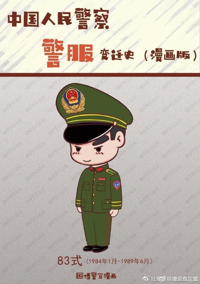 为推动队伍的正规化、现代化建设,适应国家改革开放的需要,1983年,公安部设计制作了“八三式”警服,经国务院批准,于1984年陆续换装。