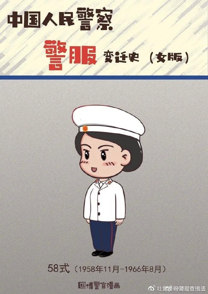 1958年11月1日,民警服装施行新的制式,即“五八式”警服。“五八式”警服,是对“五五式”警服的修改补充,1958年设计定型,1959年10月1日陆续更换。