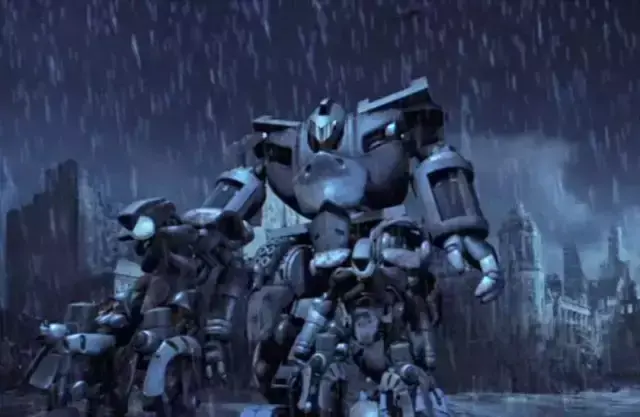 还没等肉叔生完气,三位机甲掏出了它们的武器,至此,影片迎来了一个大高潮: