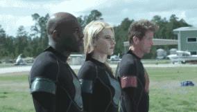 影片一开始,是两个大妞,在海上钻井平台工作人员的指挥下,开着一艘潜艇在烟波浩渺的大西洋戏水。
