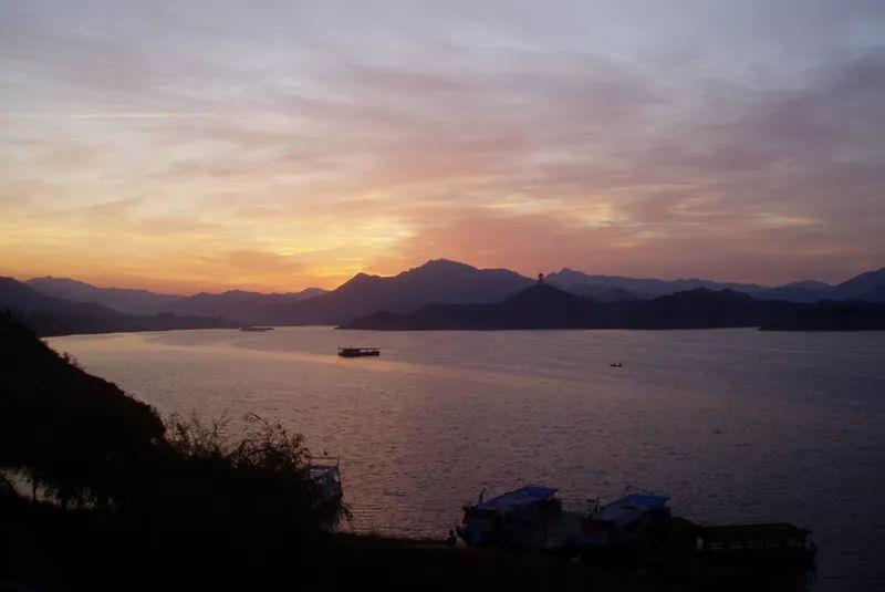 金海湖三面环山,峰峦叠翠、风景秀丽。