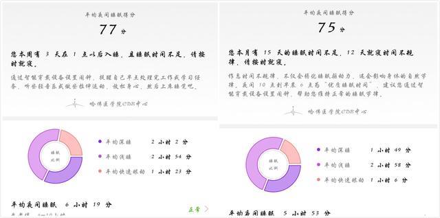比如睡眠时间里面就可以看到自己的这段时间的平均得分和相关平均数据,同时还有一些建议,都是比较有用的。