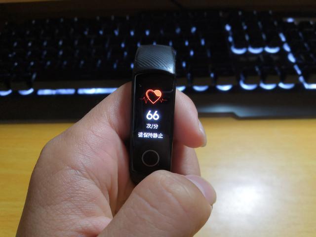 荣耀手环4采用了更耐划的2.5D玻璃,全屏触控,不需要保护膜,使用一个多月以来没有划痕出现。能够匹配安卓4.4及以上、iOS9.0及以上系统,与手机连接速度非常快。电池容量100mah,理论充电时间约1.5个小时,充电口是2PIN充电接口。传感器是6轴惯性传感器,分离式PPG心率计,红外光佩戴检测传感器,在传感器测量硬件上荣耀手环4可以说独领风骚,硬件够强才能够专业!这是心率计正在工作的图片(闪绿灯),还可以看到面积很小但是充电时连接很稳固的2PIN充电接口。