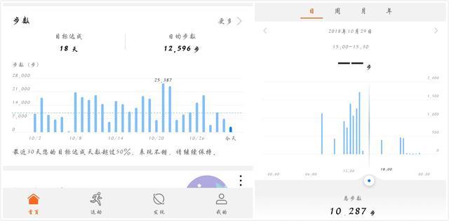睡眠时间和运动步数等等都可以按日、周、月、年来查看,可以看到自己的目标完成情况,同时会得到一些数据分析,以及对自己的专业建议,