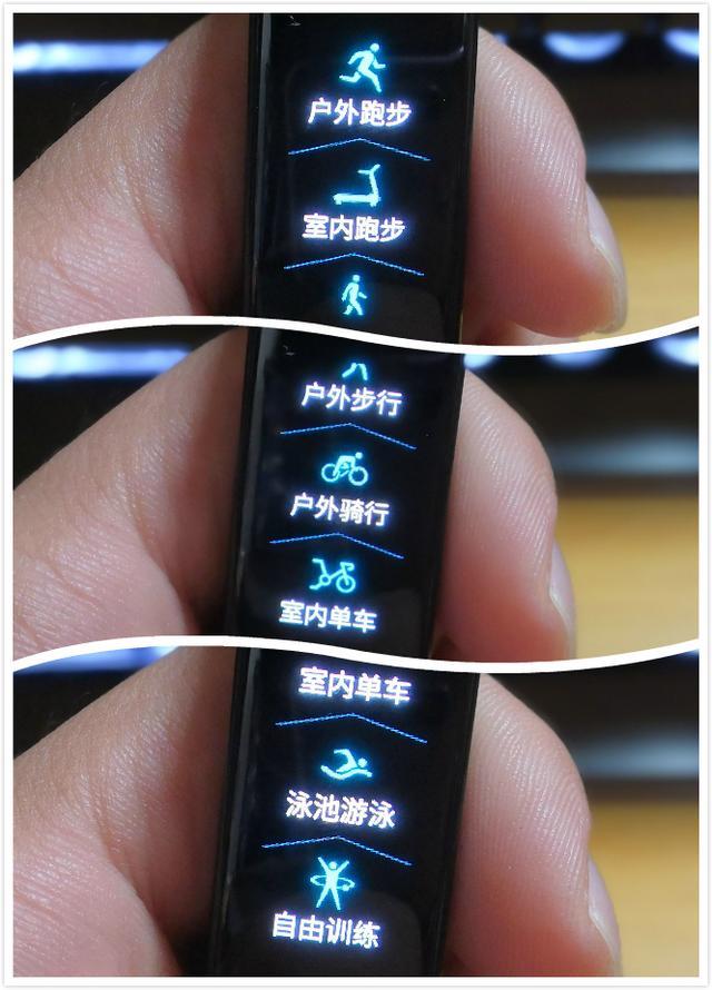 锻炼界面点击即可看到各种锻炼方式:户外和室内跑步、步行骑行、室内户外单车、泳池游泳、自由训练等等,荣耀手环4依旧是支持五十米防水的,我平时洗澡带着都没有事情,以我的实际经验来看,它是可以抵抗热水淋浴的,我的荣耀手环3被我洗了一年澡都没事。