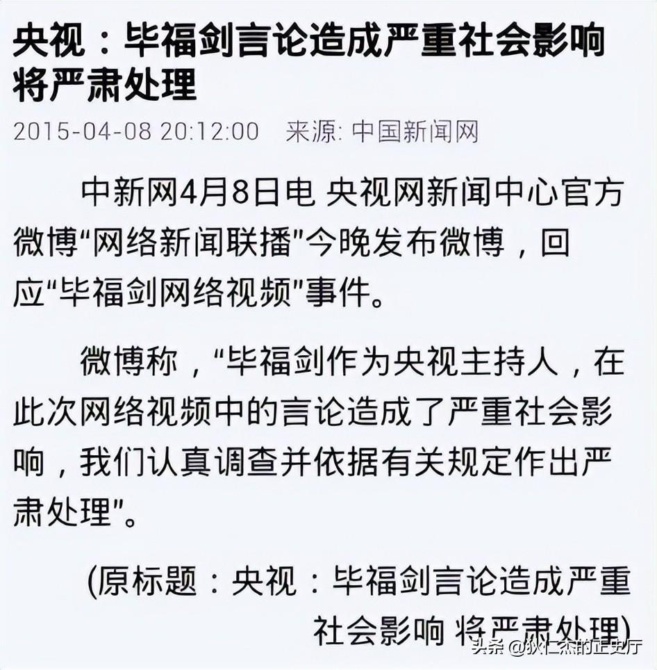不但批评了他不当的言辞,还撤销了他央视主持人的身份。