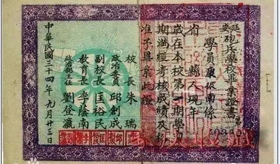 延安炮兵学校第一期毕业生的毕业证书