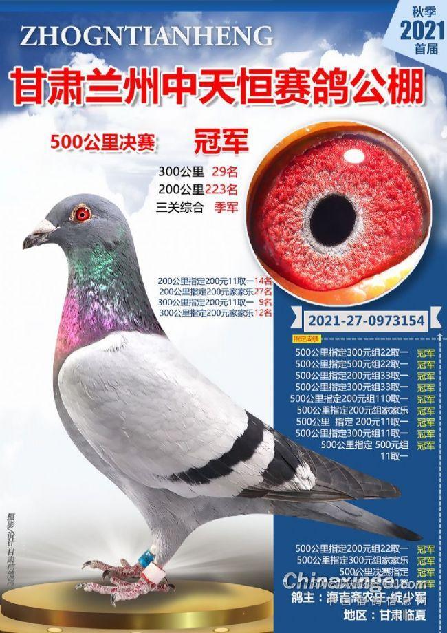 甘肃中天恒赛鸽公棚今年是首届比赛,累计收鸽5854羽,为保证赛鸽质量,公棚前后进行16站训放,最远100公里。随后开启三关正赛,这三关比赛可谓苦战,不仅要征服艰难赛线,还要与天气作斗争。战到最后一关,仅存784羽上笼,海吉斋农庄-绽少军的一羽2021-27-0973154灰鸽,率先突破重围,凭借1077.1157米/分的成绩拿下冠军,决赛当日仅有70羽赛鸽归巢,可见难度之大。而这羽冠军鸽前两关也表现不俗,分别拿下223名、29名的战绩,由此可见,好鸽子什么恶劣情况都能飞!