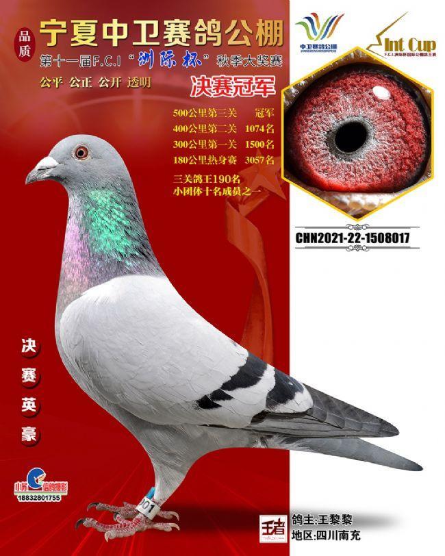 宁夏中卫赛鸽公棚2021年第十一届赛事,可谓群星汇聚,你来我往,频频精彩交锋。公棚不仅举办三关赛,更两度开启加站赛,总计飞行距离超2400公里。经过热身赛、三关赛四场比赛的大浪淘沙,共有4767羽勇士冲破险阻,脱颖而出。关关高分速、高归巢!本届比赛中,来自四川南充的鸽友王黎黎一举夺得决赛冠军,其一羽2021221508017灰鸽,分速1348.7389米/分。