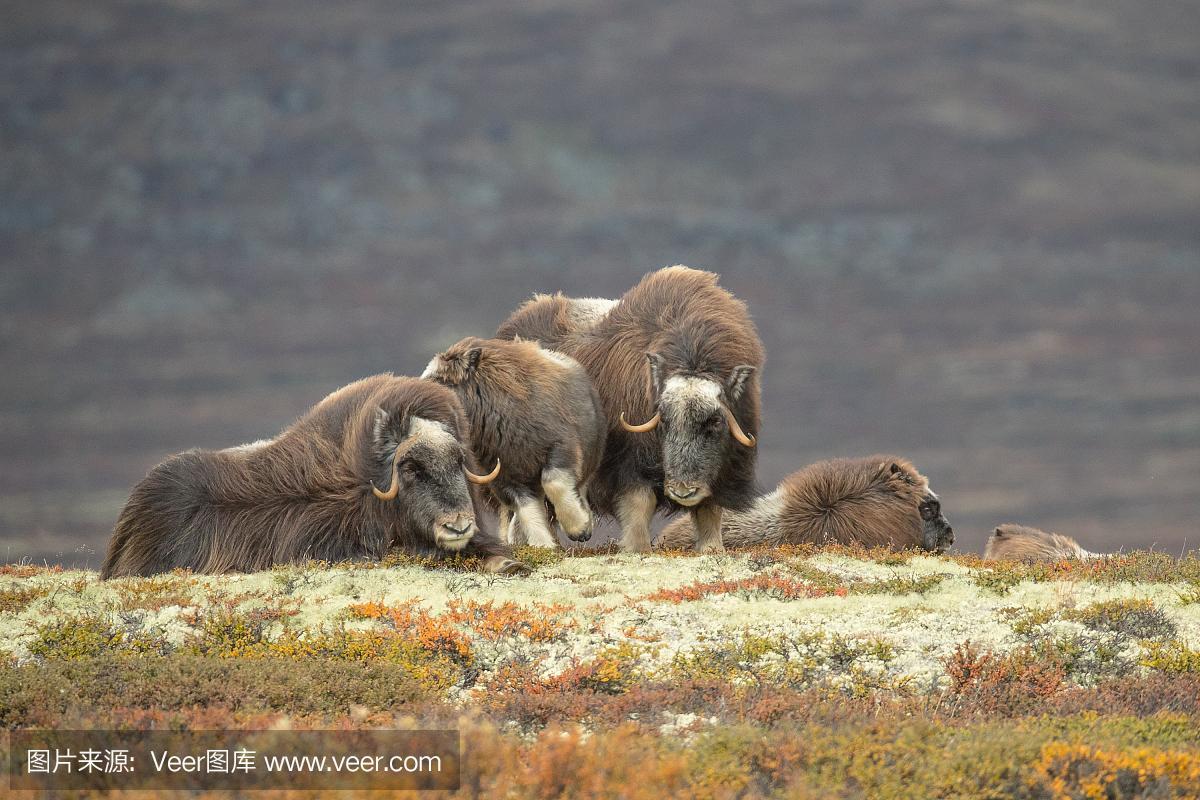 格陵兰岛的陆生动物主要有麝牛、北极熊、北极狼、北极兔、北极狐等。麝牛也叫格陵兰麝牛、白脸麝牛,是生活在北极苔原带的一种偶蹄类动物,因雄性麝牛在交配季节会散发出强烈的气味而得名,体长190~230厘米,肩高120~150厘米,体重180~380千克,躯体敦实,眼大而圆,瞳孔紫蓝色,唇和舌尖也是紫蓝色,两只小耳被长毛遮住,体毛为暗黑棕色,体毛有两层,长毛之下还有一层绒毛;夏天生活在潮湿低地,冬天到地势较高的山坡、高原和积雪较深的地方觅食;他们喜群居,夏食矮小柳树的叶子,冬食以莎草科植物、灌木叶,叶挖雪取食苔藓;麝牛是羚牛的近亲,都属于牛科羊亚科羊牛族,尽管像牛,但许多方面更像羊,可说是一种超大型的羊;目前麝牛仅在格陵兰岛、加拿大北极地区有原生种,西伯利亚、瑞典、美国阿拉斯加都是后来引进的;1972年美国总统尼克松访华,美国代表团将旧金山动物园的两头麝牛赠送给中国。北极兔是一种仅分布在格陵兰岛冰原和加拿大北部的兔科兔属动物,体型较家兔要大,一般体重4~5.5千克,身体肥胖,无尾巴,长有一身蓬松的绒毛,较大的脚掌下面也长有长毛,可在冰冷的雪地上奔跑,毛色在春夏秋季是灰色、蓝色,冬季会变成白色;北极兔以苔藓、树根等为食。北极狼也叫白狼,是犬科哺乳动物,目前只在格陵兰岛北部和加拿大北部有野生种群,全球仅存1万多只。
