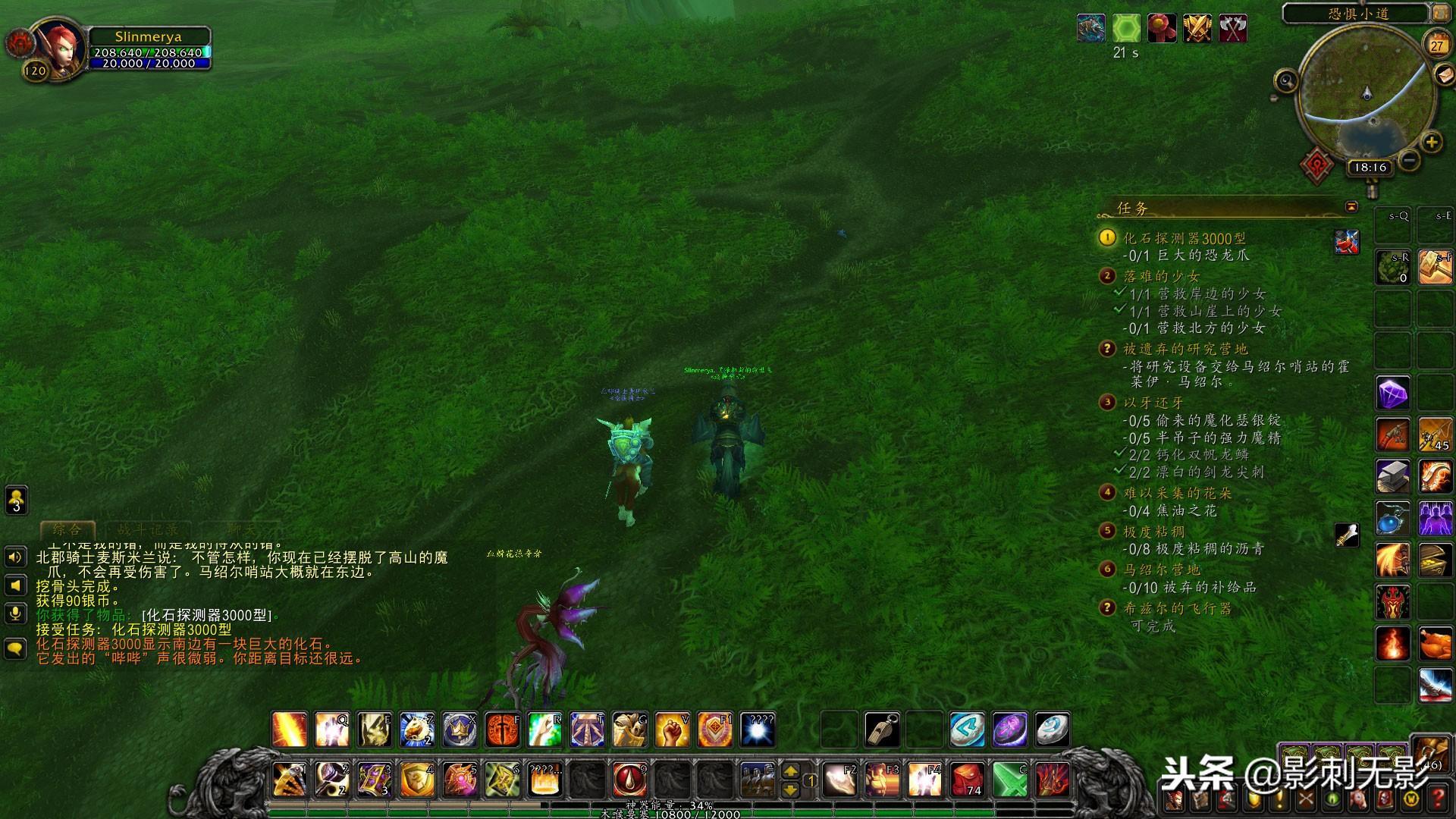 5,来到覆苔营地,之前打恐龙的时候掉的一个损坏的长矛也是在这里交任务,把任务都接了以后先在营地拆解黑暗长矛,接到任务后我们先出门打翼手龙,顺便收集黄色水晶柱,在翼手龙附近也有老双帆龙,掉钙化双帆龙鳞,在葛拉卡温泉附近杀剑龙掉尖刺,在温泉附近还接到3个任务,一个地精一个北郡骑士麦斯米兰,还有一个研究器材的任务,骑士的任务是带着他杀15个龙,还有拯救3个少女,第一个在温泉边,好吧见了以后才知道是个男的血精灵,这个骑士莫不是瞎子吧=。=,对话后帮他把水里的箱子捡上来就完成了,顺便在附近做地精给的挖骨头的任务,打附近的剑龙还有双帆龙都可以,打够后去找第二位少女,在悬崖的晶柱旁边,好吧这次又是把人家从山上推下去,完了还赖我=。=,幸亏人家没摔死,再去找第三个少女之前把地精的任务先交了,这次又让我们去找最大的化石,还给了个道具,每次使用道具都可以看到橙色的字体提示我们距离还有方向,一只使用道具知道找到地上的一个大土堆就可以拾取任务物品了,回去交任务又让我们去杀个矮人,抢夺杜林的考古报告,完成后交任务去找西部水晶塔,点击查看完成任务,现在去救骑士的第三个少女,如果中间你的骑士跑丢了就回任务点再找他对话就可以了,找到第三个少女后一堆废话后完成任务,接着跟骑士再去温泉附近,他对蒸汽幽灵祷告的时候我们在旁边挨揍就可以了,完成后他就去营地等我们了=。=,走的时候叫我多香果=。=