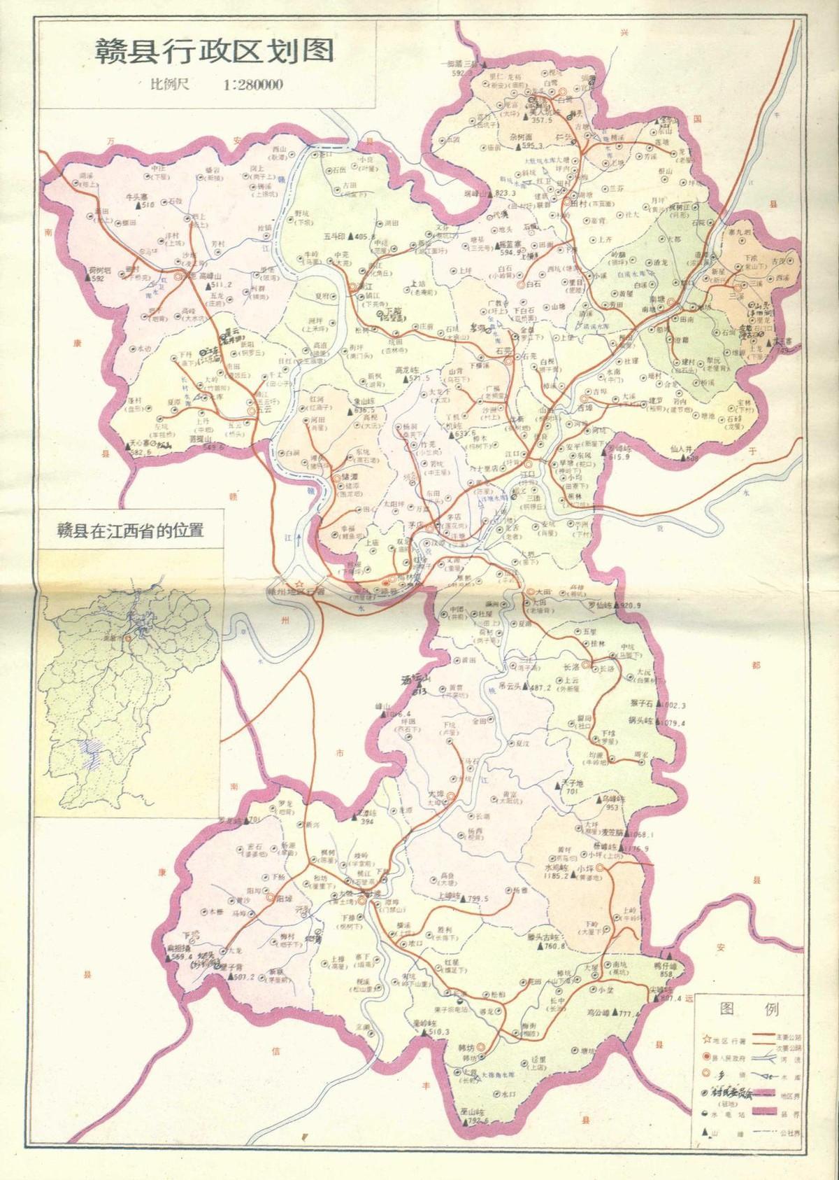 1978年1月沙石、沙河、蟠龙、湖边4个公社划赣州市管辖。全县设1镇、20社,辖285个生产大队,3130个生产队。