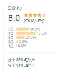 目前豆瓣电影评分为6.3分也是让范儿姐跌破眼镜,毕竟杰森·斯坦森的又一力作,预计在21日正式在上映后上7分是不太困难的。