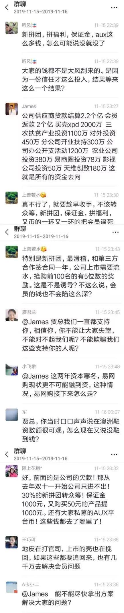 到了7月25日,贾永龙在董事微信群称,不在澳洲上市了,要改到美国纳斯达克上市。举报资料称,易网购就此跑路。王薇称,“贾永龙人去了澳洲,在易网购账户有钱的会员,(易网购)后台都打不开了,易网购现在看起来就是一个很普通的购物APP。”