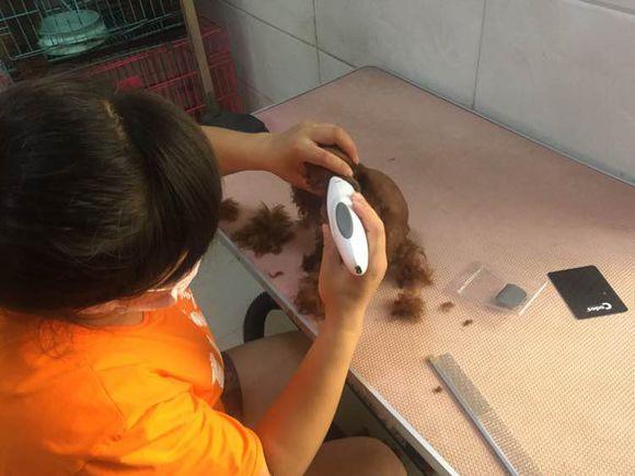 昨天带她剃胎毛了!本来想自己在家给修修!可男票坚持让剃!好吧!天确实太热!剃了宝贝可以凉快些!麻麻和宠物店工作人员沟通一定不要伤了你的毛囊!一定要好好剃!还好我有心里准备!虽然变身小毛驴!哈哈!但麻麻还是那么爱你