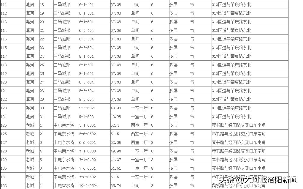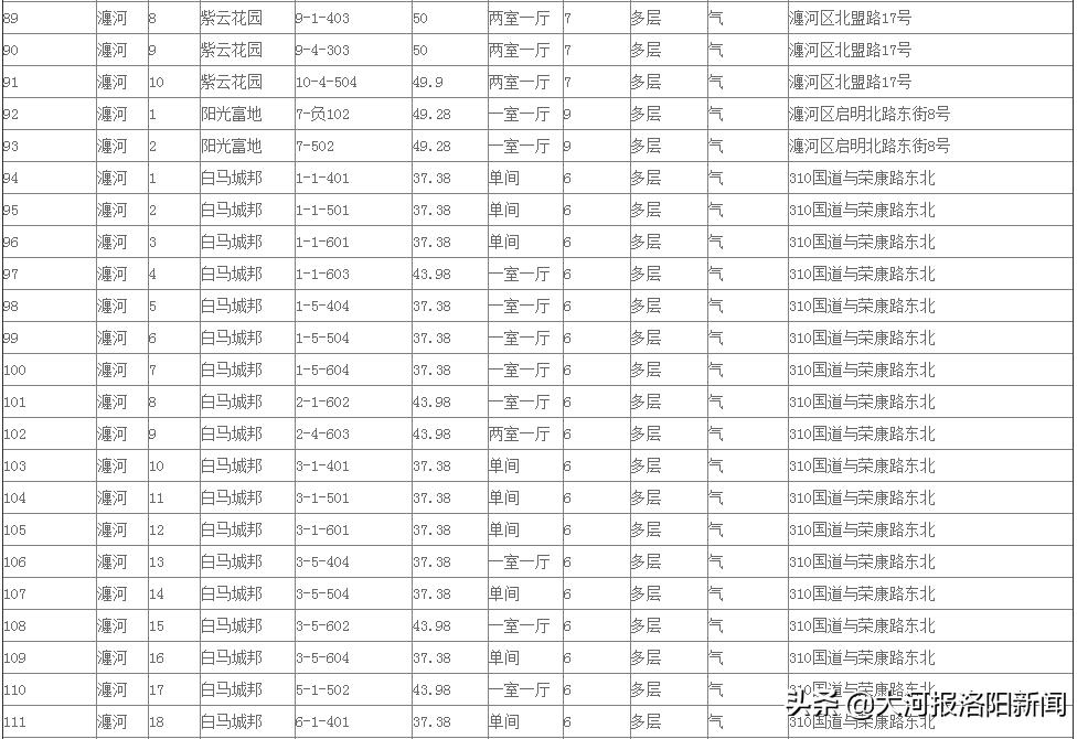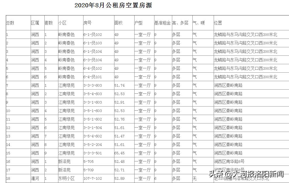 今日,大河报·大河客户端记者从洛阳市住房保障和房产服务中心了解到,目前洛阳市部分公租房有空置房源,包括涧西、瀍河、西工、老城等区域,如需申请公租房的困难家庭,可向各区房产保障部门申请。