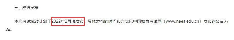 考完了四六级大家最关注的,当然就是什么时候出成绩了!据官网消息,本次考试成绩计划于2022年2月底发布,具体发布的时间和方式以中国教育考试网发布的公告为准。