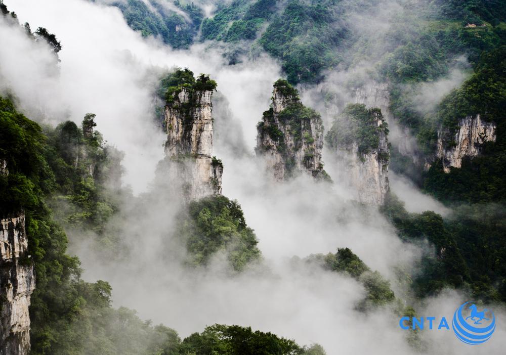 清江方山景区处于神秘的北纬30度线上,在被武陵山脉的环拥切割中形成了峰丛如林、瀑布满山的神仙地界。(清江方山景区提供 李樊/摄)