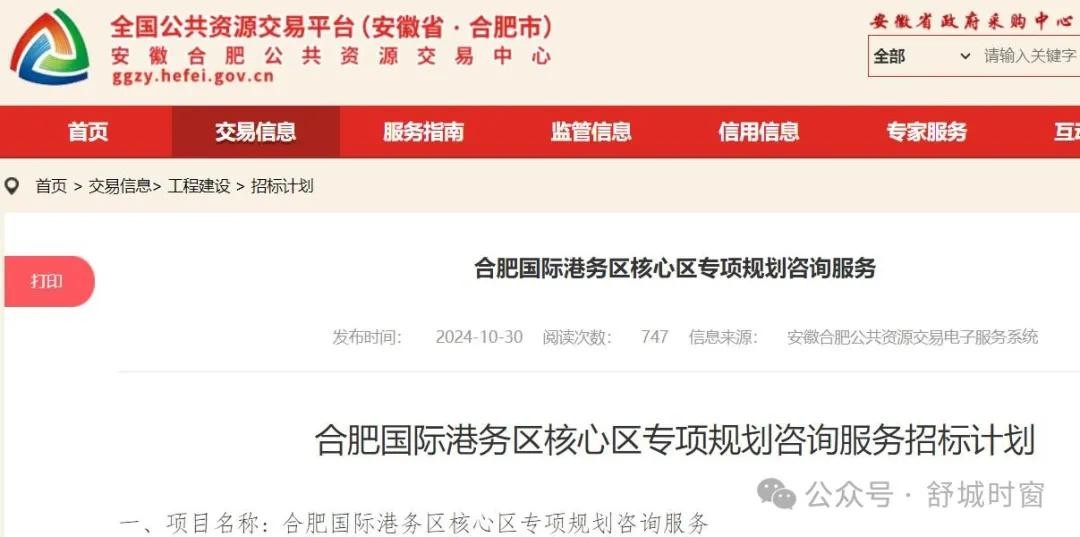 此前的11月2日,本号《舒城时窗》已发《合肥国际港务区核心区专项规划咨询服务招标计划》(摘录)