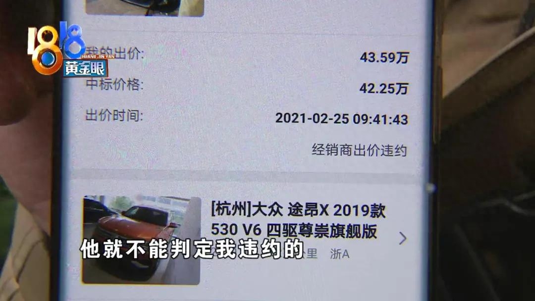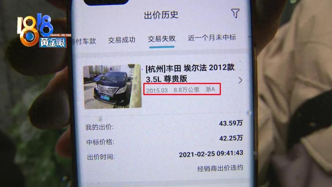白老板在杭州城北开了一家二手车行,他说之前通过天天拍车平台,竞拍了一辆丰田埃尔法车,准备成交的时候,接到平台电话,说是车子公里数不对,问他还要不要,他说不要了,但后来自己被平台判定为违约,还要扣五百块钱的押金,他无法接受。
