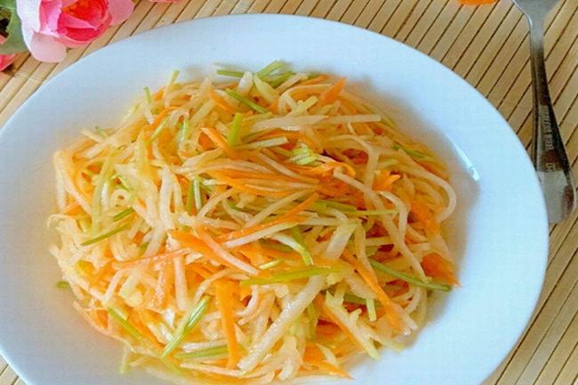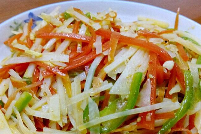这凉拌三丝都是根据个人的口味和时令地区来变换的,只要是蔬菜丝就行,当然也有人加入粉丝或者豆皮丝,基本就是有什么拌什么。由于都是蔬菜,所以也比较清爽,是一道十分健康的家庭小菜。