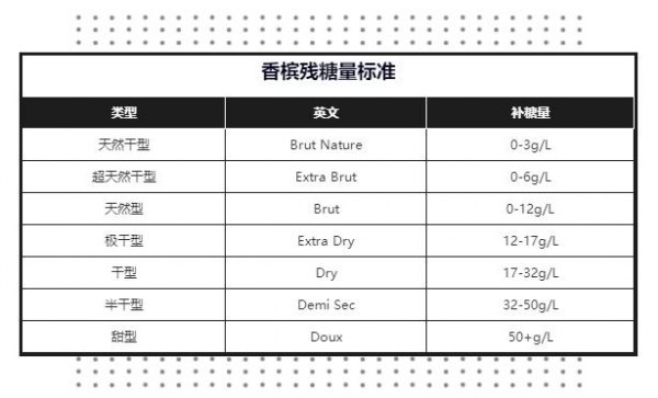 起泡酒可以算得上一类很特殊的葡萄酒,甜度上的划分也显得十分与众不同。以其中最出名的香槟为例,其甜度按照由低到高足足划分出了7个范围!