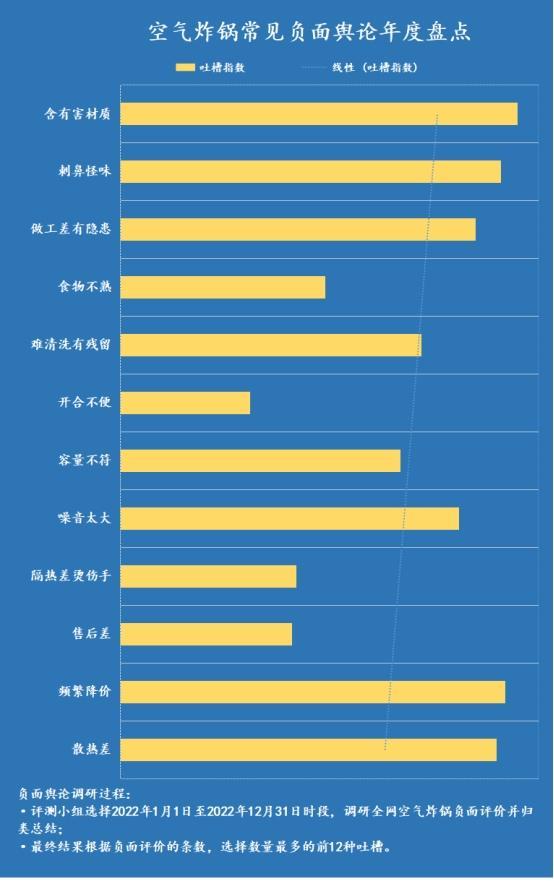 空气炸锅有什么危害吗?通过上文的学习,想必大家都被惊出了一身的冷汗,万万没有想到小小的空气炸锅竟然还会暗藏这么多的危害。可能有不少小伙伴对此感到好奇,究竟是什么原因导致空气炸锅产生的这些危害呢?为此,我特地找来了一张由权威家电论坛对空气炸锅的负面评价统计图(如下图)。接下来,让我们管中窥豹,一起来探究空气炸锅产生危害的原因到底有哪些吧,避免后续踩雷。