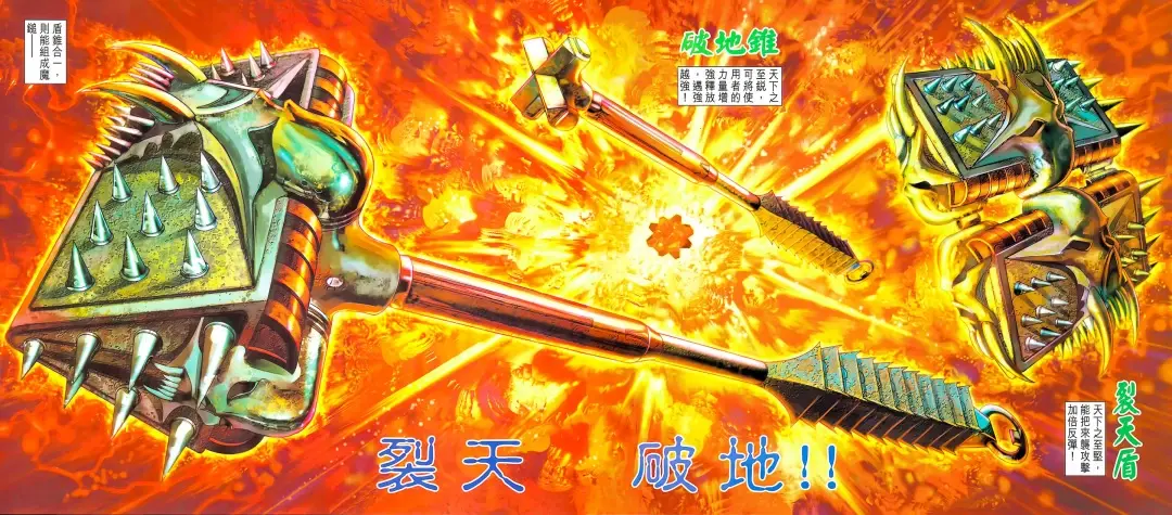 起源:燕王和灭鬼神战斗的时候,因为燕王之前已经身负重伤,故而败给了灭鬼神,被投入了熔炉,眼看着就要殒命,而这个时候无法保护自己情人以及女儿的绝望之情,让燕王身边的魔珠被情绪牵引,吸收熔炉中的金属和息壤化作一对魔兵:裂天破地。