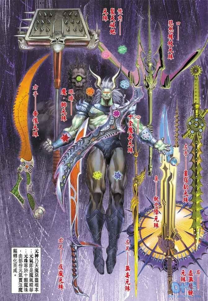 异能:1.拥有蛊惑人心,迷惑众妖的能力;2.目力无限,万物皆被纳入其广角视界之内;3.魔兵中惟一有思想的生物兵器,可以不断制造自己的分身——夔·卒
