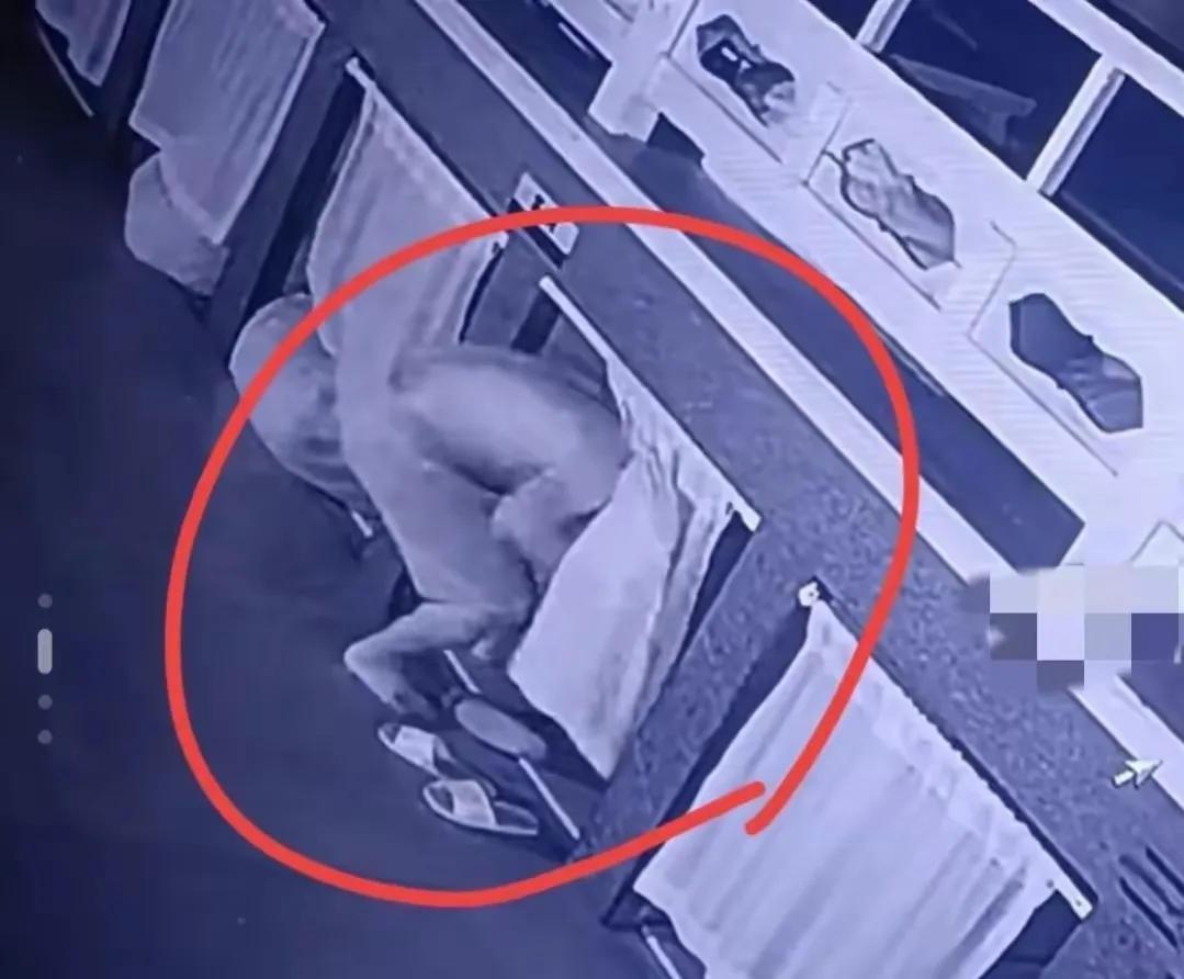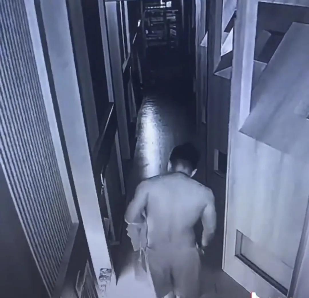 凌晨2点多,一名光膀子的年轻男子,个子中等,身材健硕,正在挨个小房间查看,似乎在寻找目标。