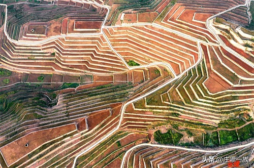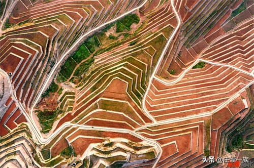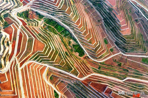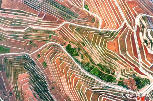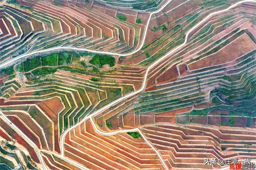 鸟瞰浅卧于山中的梯田,层层叠叠错落有致,覆盖了周围山坡,线条简洁流畅、潇洒自如,由线条构成的面积,大小不一、形态万千,造就了印象派瞬间光色印象和绚丽色彩的绝佳视觉效果。梯田比邻西胜沟旅游风景区,那里冬暖夏凉,有山有水,是休闲度假、游玩避暑的好去处,特别是每年的5月至9 月是旅游的好时节。