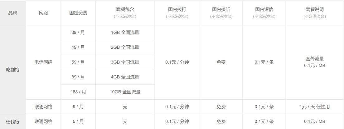 三大运营商10GB流量套餐价格对比