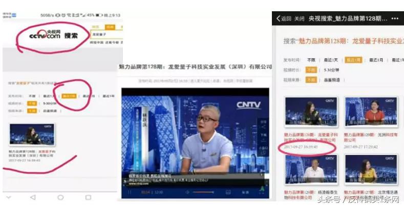 除了纸媒,龙爱量子还试图利用央视来做宣传。据网友爆料,央视的魅力品牌节目的第128期,报道了龙爱量子科技实业发展(深圳)有限公司,播出时间为2017年9月27日,但在播出后的几个小时内就被迅速下架。