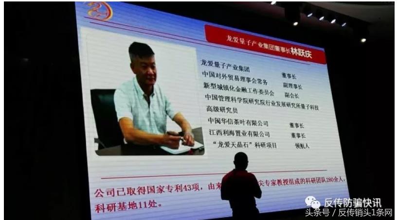 在龙爱量子的宣传中,林跃庆的头衔很多,比如原中国农业部副科、国家十三五战略规划西部大中华执行小组副组长、联合国绿色企业基金会主席团副主席等。