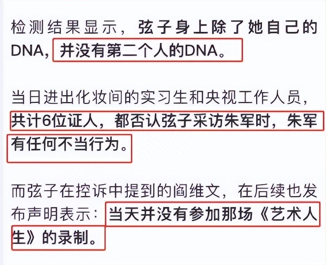 这样蒸腾下来一直到2022年,终于朱军的清白被证实,而弦子也因为证据不足被驳回上诉,终于用四年的时间证明了自己的清白,但是这也让朱军失去了他前期一切的努力,但是妻子对他的支持却让他非常感动加感恩。