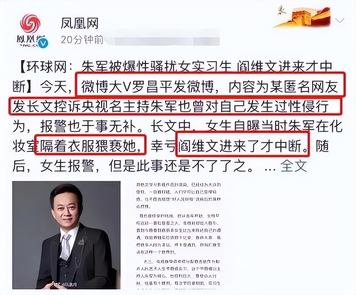 可能他自己也没有想到,就在短短的一夜之间自己竟然从人人喜爱的主持人,变成了人人厌恶的“性骚扰”人员,这个人就是朱军。