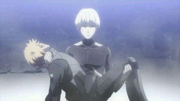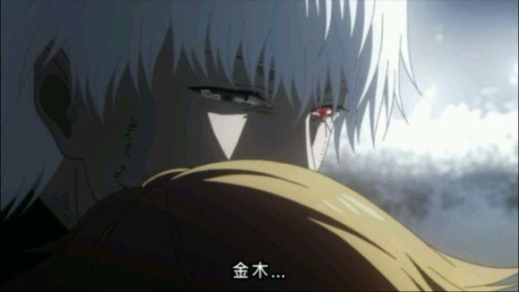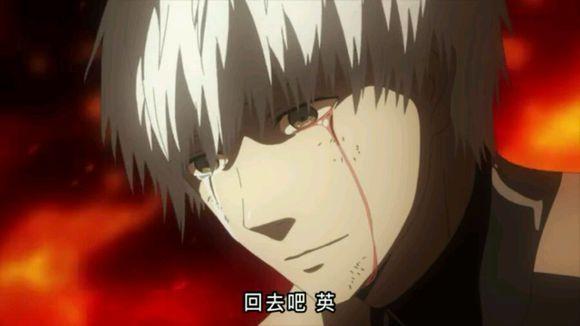 木抱着英,前面是有马在等着他,看到有马我的心里很紧张,感觉金木会被虐,但是金木把英放到地上(个人感觉英没有死,金木想救他)很温柔的看着有马,金木的表情已经回来了,金木自从第一季到现在从来没有过这么温柔表情,我想金木“回去”了,然后就是一个悬念了,黑屏。