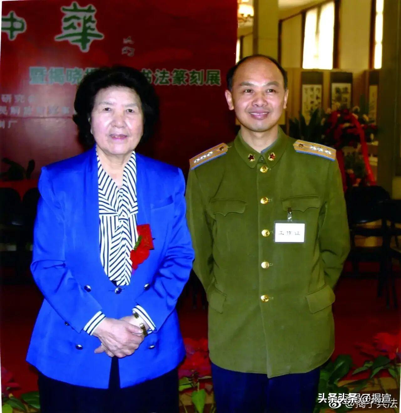 万绍芬在爱我中华——百名将军书画摄影展览暨揭晓揭若云书法篆刻展览开幕式上与揭晓合影留念