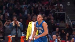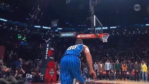 第3扣,戈登这记空中折身坐扣,拉伸幅度之大,展开之凶猛,见所未见,让人肾上腺素飙升,足以成为经典,50分。这个扣篮个人认为是戈登最好的扣篮。