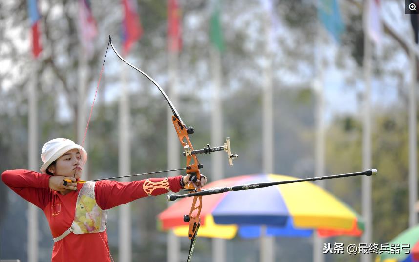 1、 高位举弓 弓举起后,眼睛、准星和黄心垂直线上方的某一点连成一条直线。举弓的高度一般与眼睛持平。这种举弓方法在开弓前两肩能最大限度地舒展放松,背部肌群也能预先拉长放松,对开弓和开弓后的固定姿势都是十分有利的。