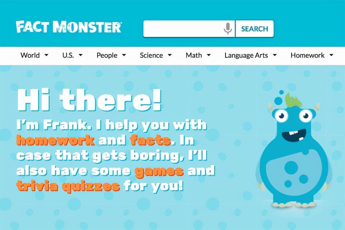 Fact Monster 是教育游戏的绝佳选择。学习游戏和视频的主题涵盖世界、科学、语言艺术、数学等等。Fact Monster 还结合了基本的参考资料、抽认卡、有趣的事实和功能,以及为孩子们提供的家庭作业帮助。五岁及以上的孩子会喜欢 Fact Monster 让学习变得多么有趣。查看Fact Monster以了解更多信息。