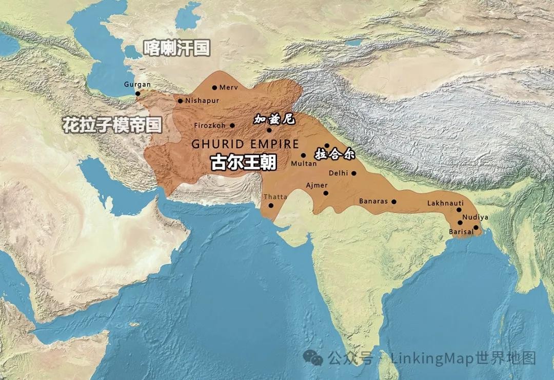 ▲公元9世纪,来自阿富汗加兹尼一带的高度波斯化的突厥人(突厥-波斯文化)建立古尔王朝,并将势力范围扩张至南亚平原大部分地区,开始带动南亚的政治中心继续西移。