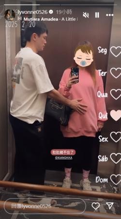 刘雨柔男友罕见入镜摸她的孕肚。(图/翻摄自Instagram/lyvonne0526)
