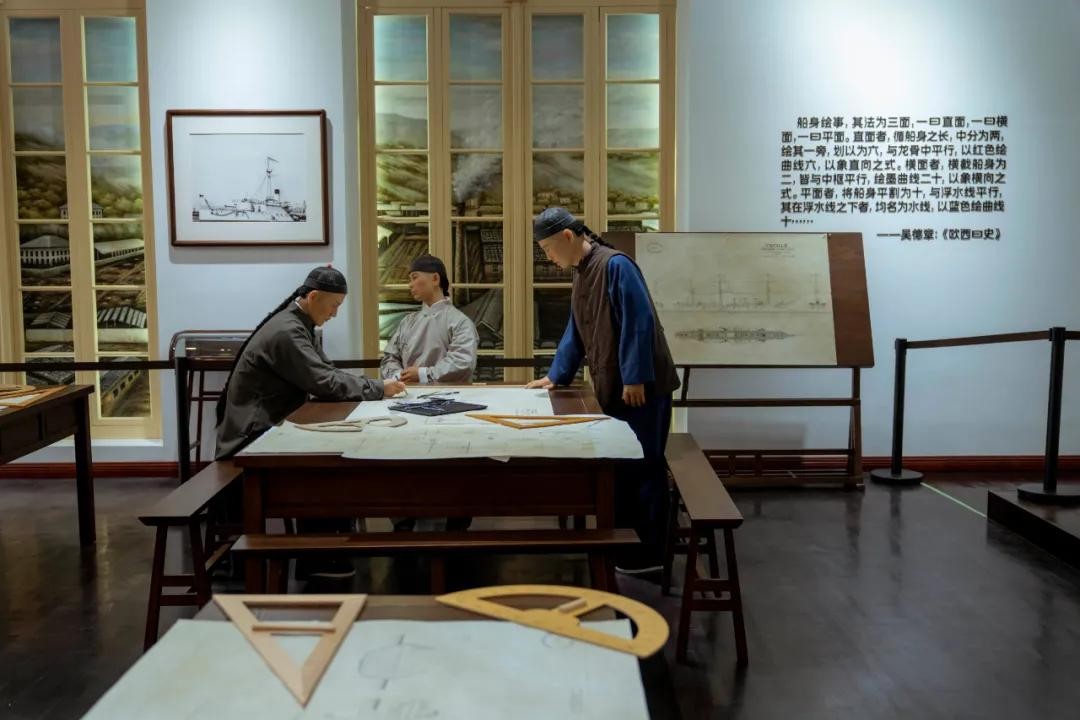福州船政遗址内,清朝学员学习建造轮船的复原场景