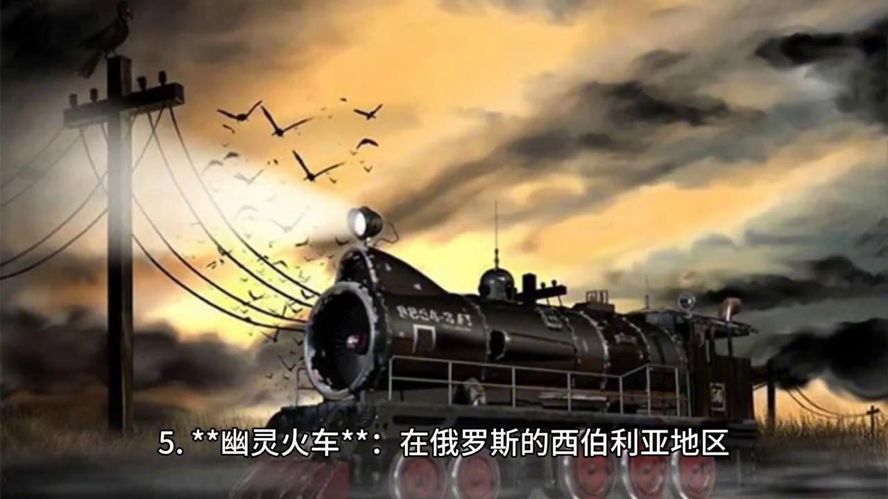 ·5.幽灵火车:在俄罗斯的西伯利亚地区,有许多人声称看到了神秘的火车在夜间行驶。这些火车似乎不受任何因素的影响,没有任何司机和灯光。这种神秘的火车被称为幽灵火车,让人感到十分恐怖和诡异。许多人都不知道这种幽灵火车的来源和意义是什么。但是这种神秘的火车已经成为了一种独特的西伯利亚传说。