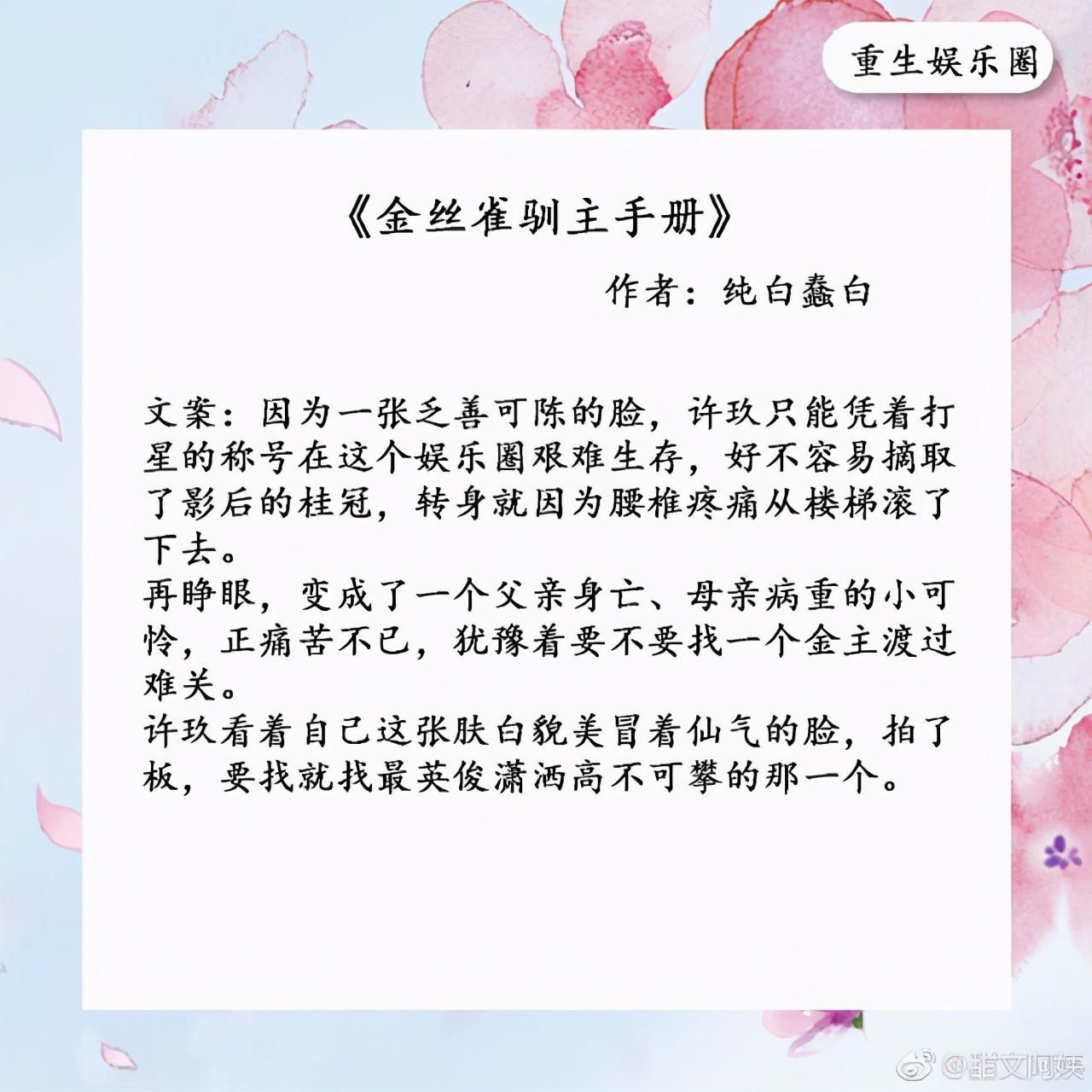 3.《金丝雀驯主手册》作者:纯白蠢白