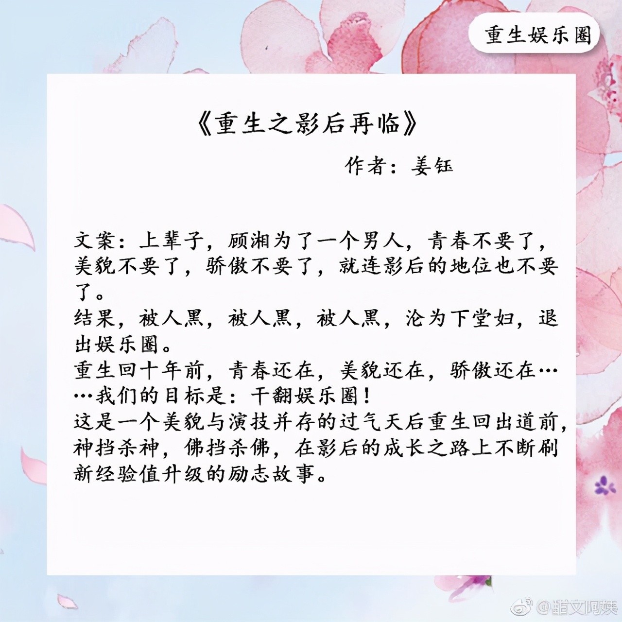 1.《重生之影后再临》作者:姜钰